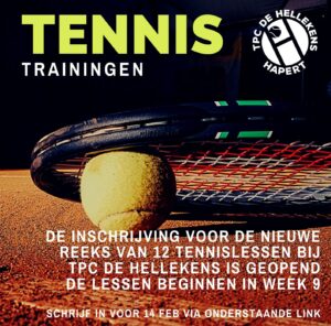 De tennislessen starten weer in week 9. Inschrijven is mogelijk via onderstaande link vóór 14 februari: